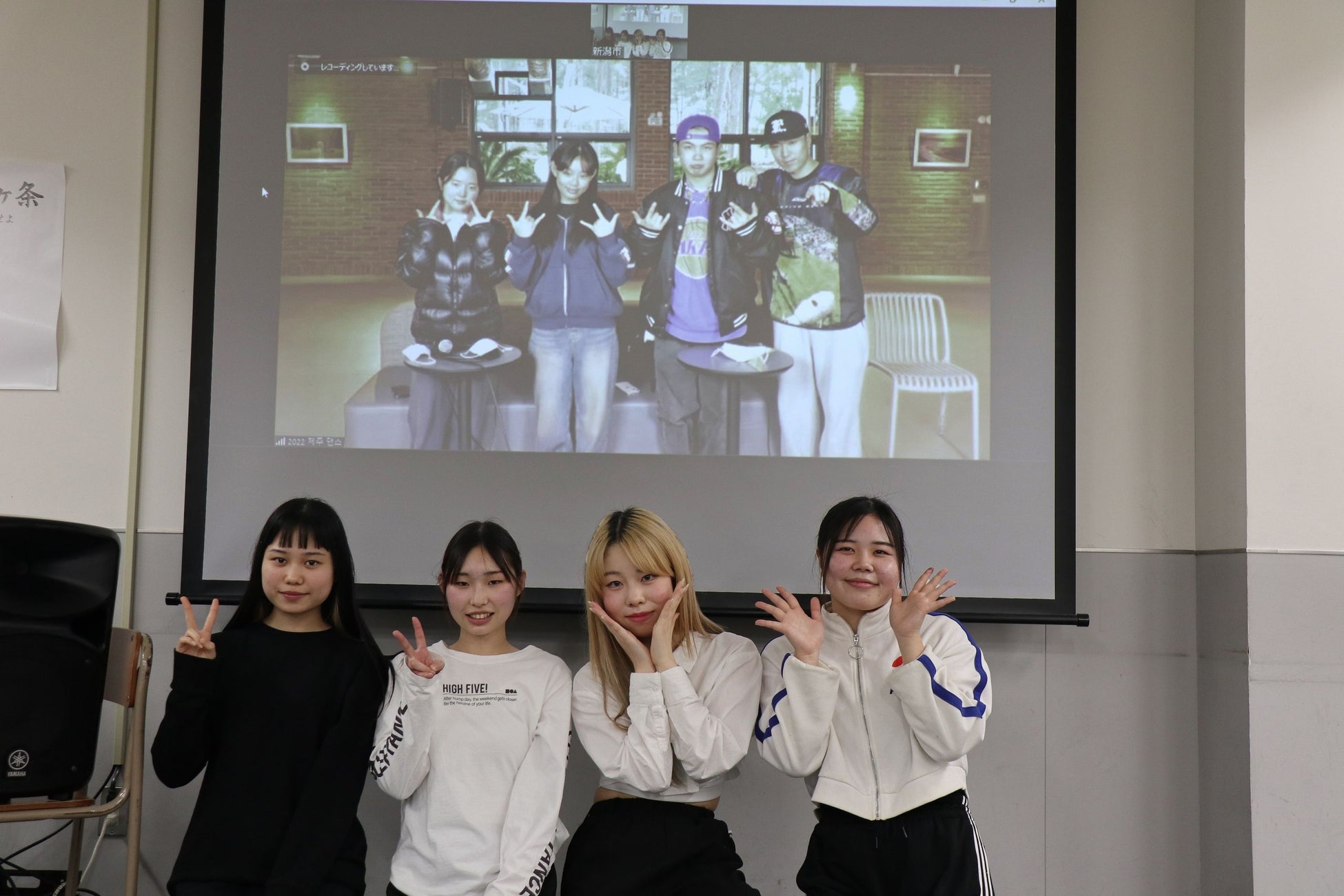 Zoomで済州道と繋がった時から緊張し、こちらが話す韓国語が相手に伝わるか心配でした。ですが韓国の方々と現地のことやお互いの趣味を共有する事が出来てとても楽しかったです。これから課題曲のダンスを撮影する事になりますが、お互いの良さが出るように高めあい、良い作品になるように頑張ろうと思いました!