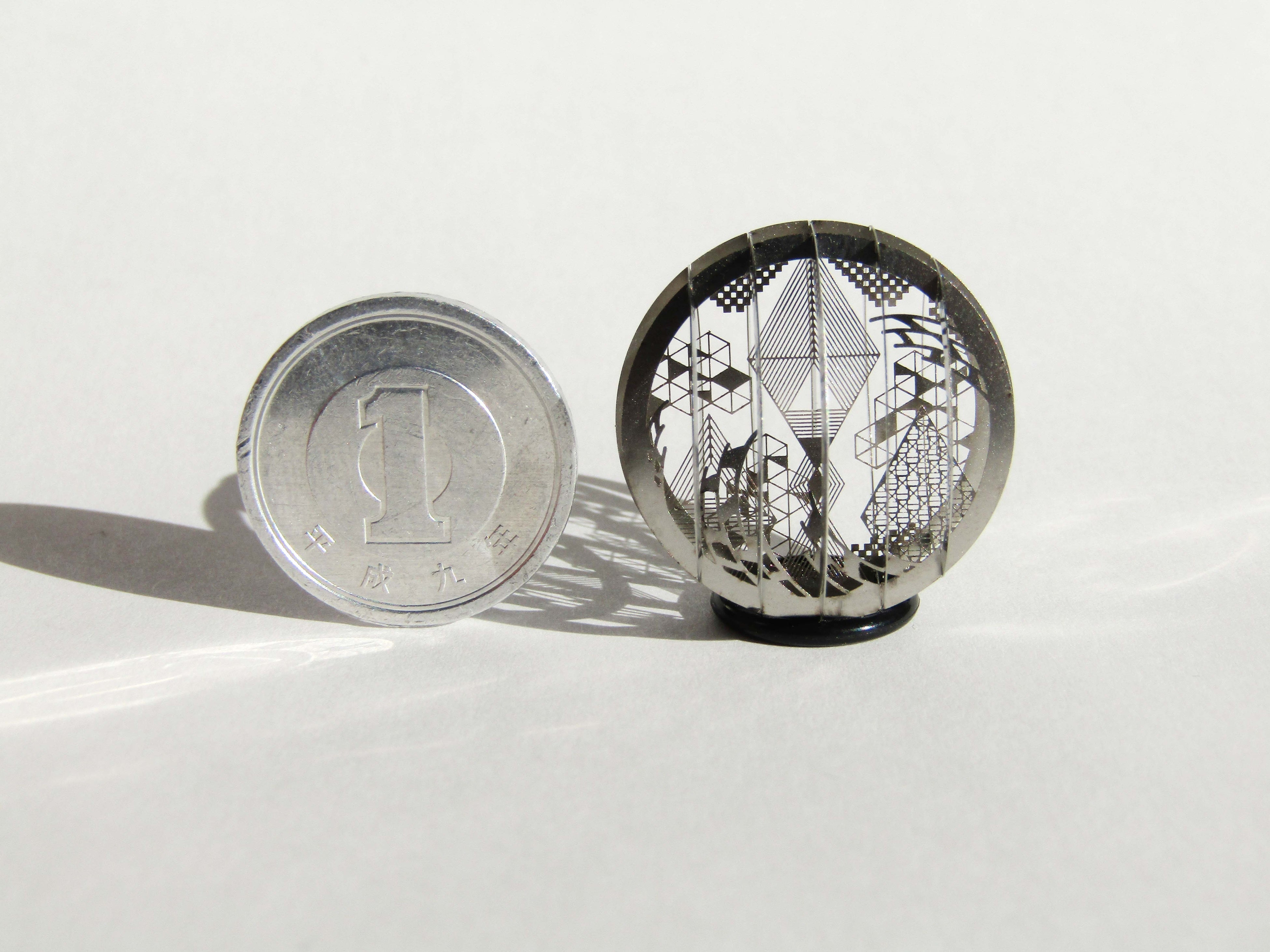 本コンテストは、日本が世界に誇る微細加工技術を分かりやすい形で発信し、微細加工市場の活性化を図ることを目的とし、微細加工従事者やデザイナー、学生等を対象に、微細加工技術を活かしたデザイン性のある作品を募集し優秀作品を表彰するものです。1インチ部門(25㎜以内の寸法以下の作品)、時計・宝飾・オブジェ部門、3Dデザイン部門で構成され、当社が出品した「地球の移ろい」は1インチ部門で準優勝に輝きました。