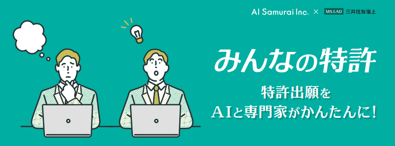 さらに、業界初、知的財産権訴訟費用保険が無償付帯となります。本サービスを利用して特許出願を行えば、取得した特許権が含まれる利用者の製品・サービスに対して特許侵害訴訟を提起された場合に弁護士費用等の訴訟等に関する必要かつ有益な費用の一部が補償されます。AI Samuraiのサービスと三井住友海上様の知的財産権訴訟費用保険との組み合わせは、自社の知的財産を「特許」と「保険」の両面から守る、業界初のサービスです。また、サービスにしっかり保険を付帯することによって、(株)AI Samuraiは、知財立国を目指す日本の国家戦略に特許出願と保険の力で貢献します。