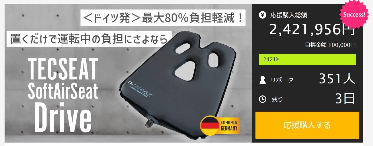 makuakeプロジェクトURL:https://www.makuake.com/project/tecseat_softair_seatdrive/