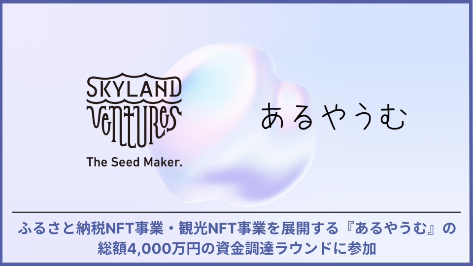 あるやうむ社長の畠中さんとは、ふるさと納税×NFTをテーマに事業展開して行くことを合意し、2022年末に初回投資させて頂きました。その後、順調に複数の自治体と二人三脚でNFT販売を開始し各地の寄付を集めており、この事業の拡張性を信じる優秀なメンバーが集っています。