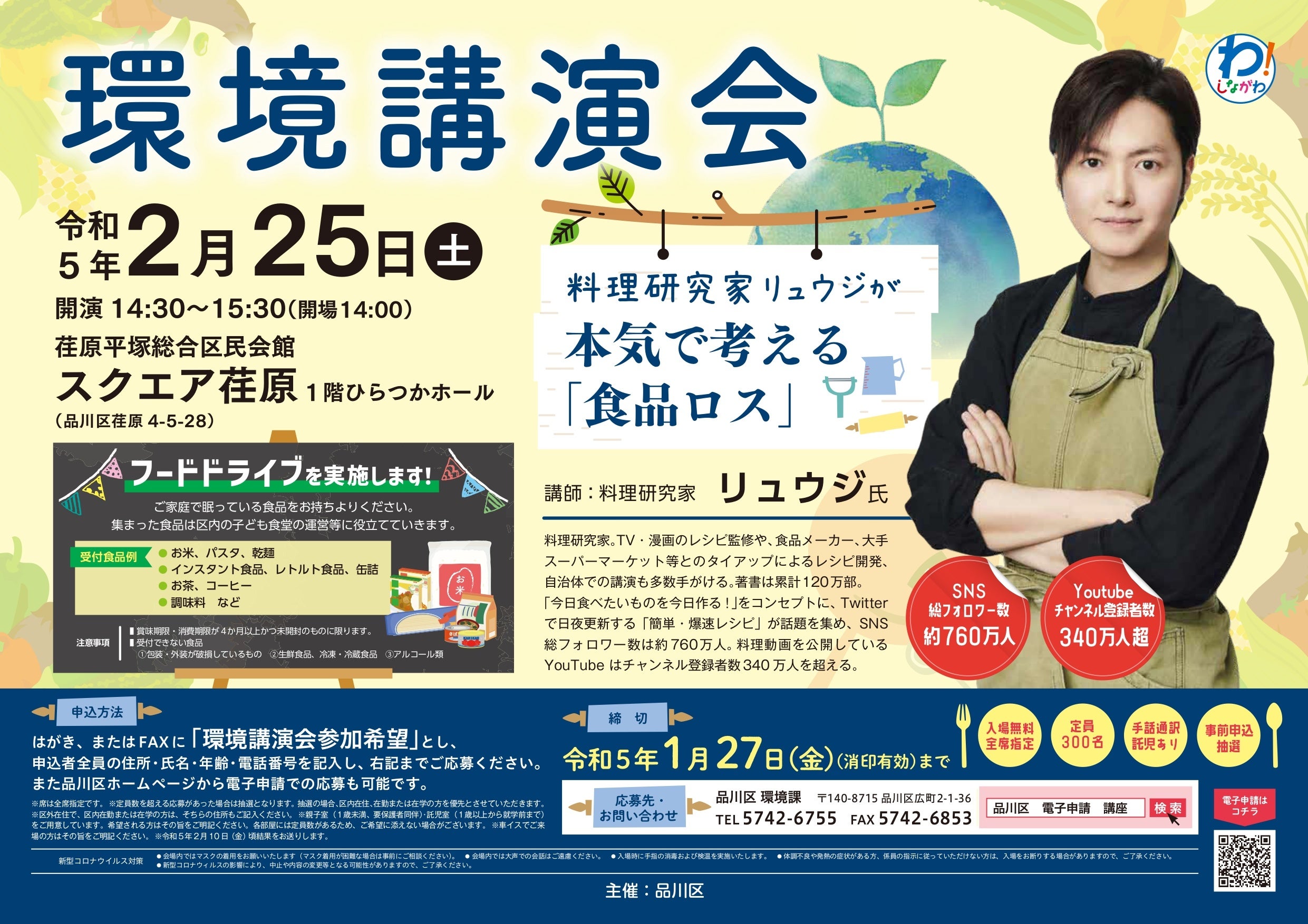 今年度は、「今日食べたいものを今日作る!」をコンセプトに、Twitterで日夜更新する「簡単・爆速レシピ」が話題を集め、SNS総フォロワー数が約760万人の料理研究家リュウジ氏を講師にお招きし、「食品ロス」をテーマに講演して頂きます。