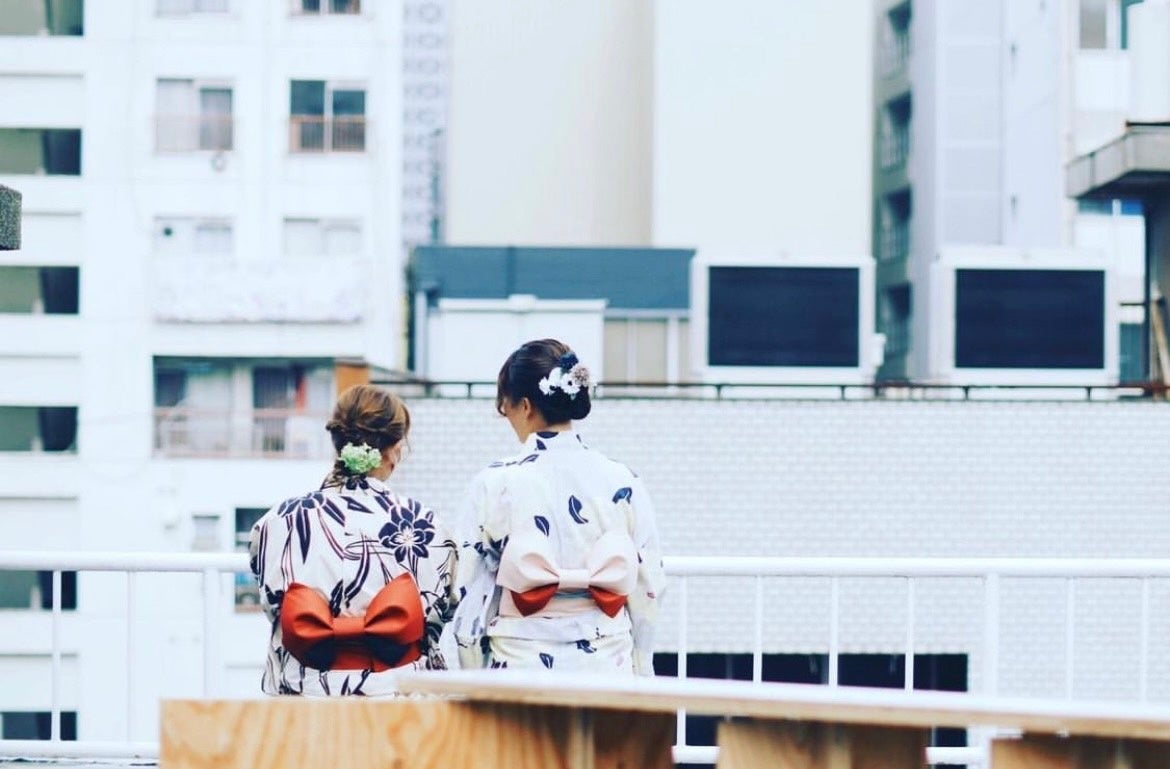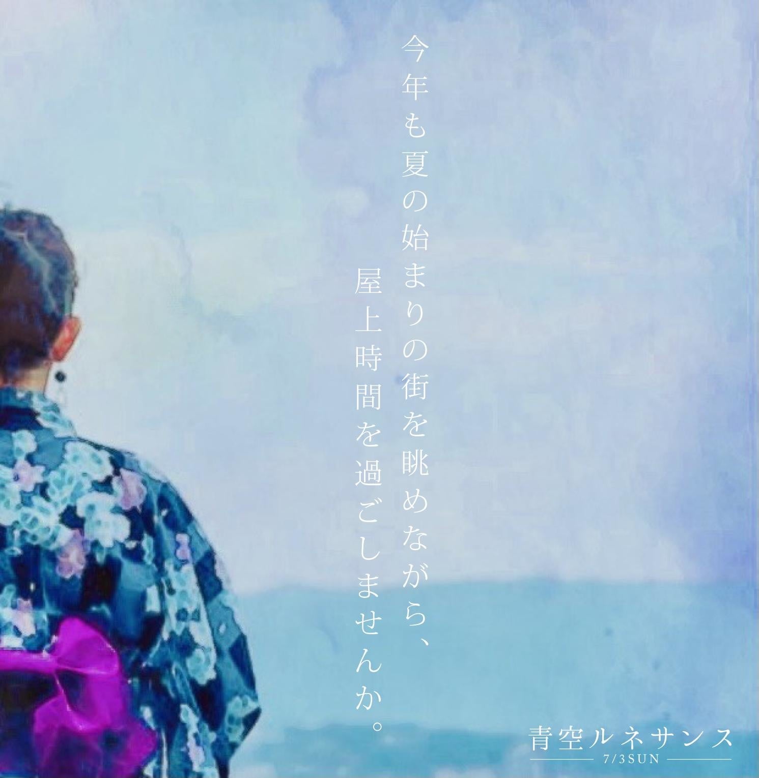 昨年の、浴衣 x 屋上が規模拡大し、キモノヤーンさんの風鈴が加わり、絵付け体験も出来ます。※