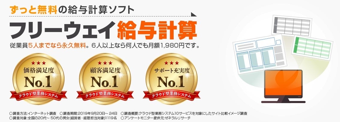 フリーウェイ給与計算は永久に無料でご利用いただける給与計算ソフトです。