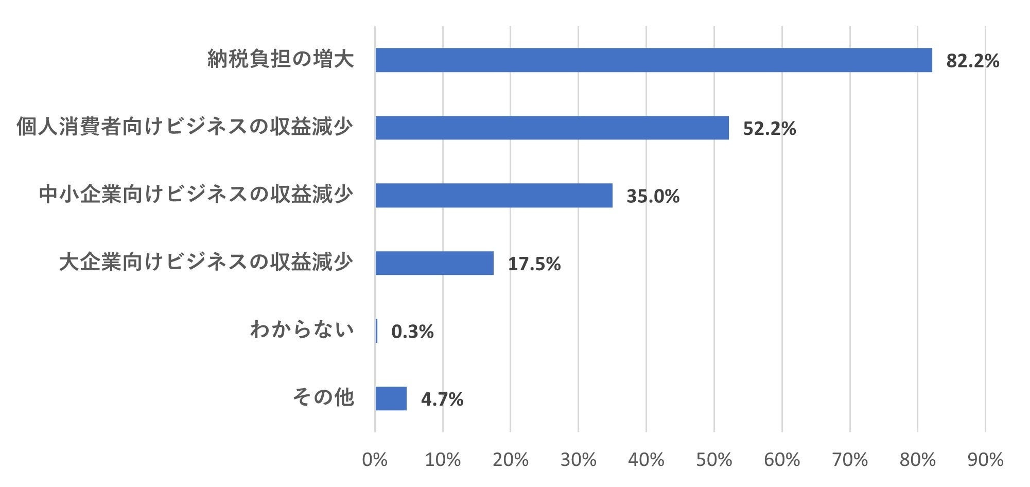 ◇マイナス影響としては「納税負担の増大」に次いで「個人消費者向けビジネスの収益減少」が52.2%