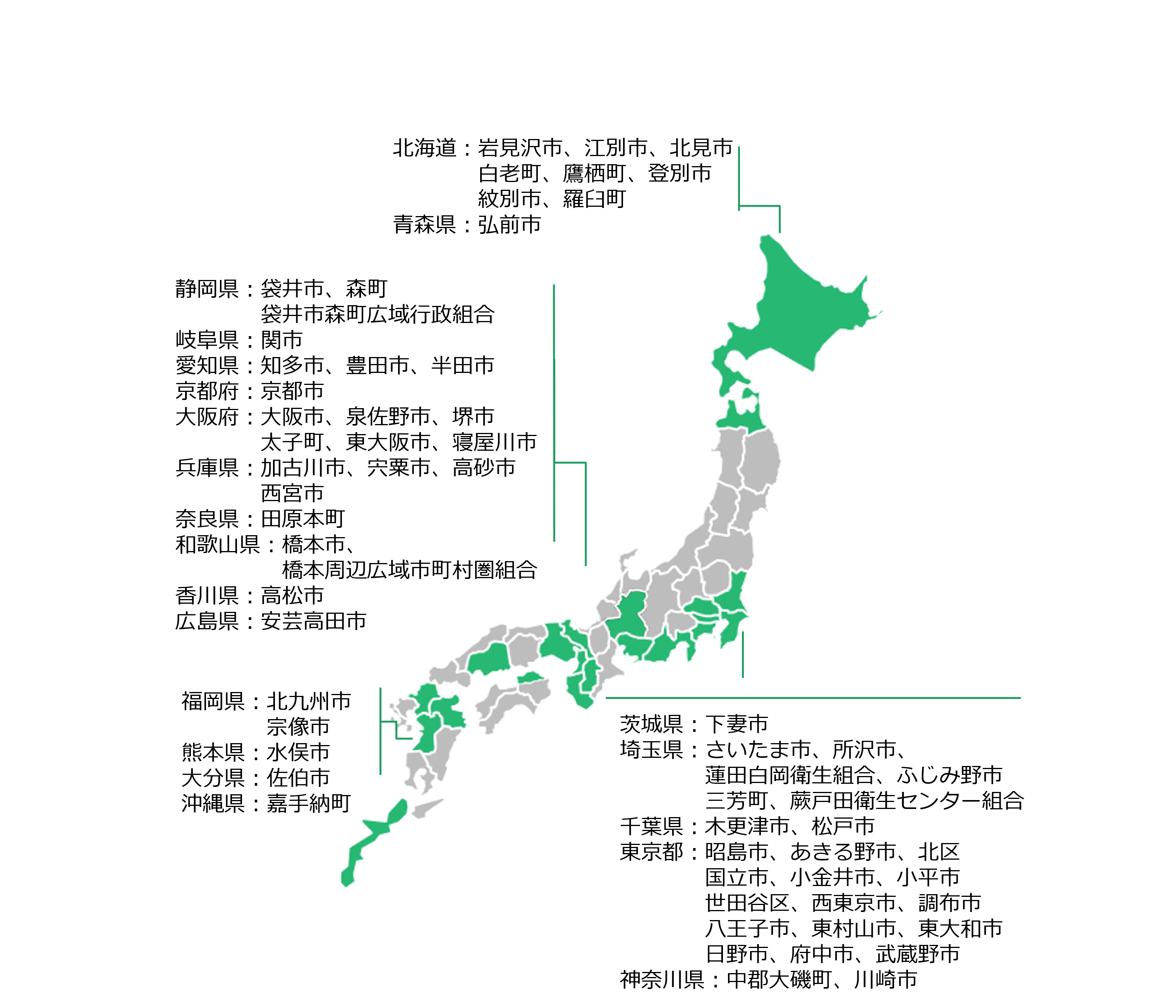 2022年12月19日時点で63箇所の自治体と協定や覚書を締結し連携し、リユースに関する啓発及びリユース事業を推進しております。