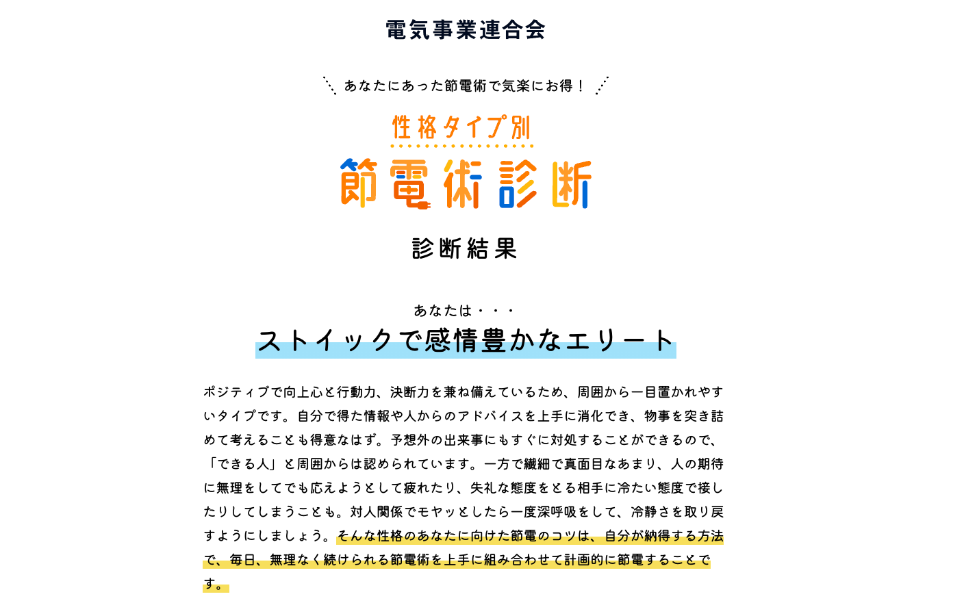 「性格タイプ別 おすすめ節電術診断」