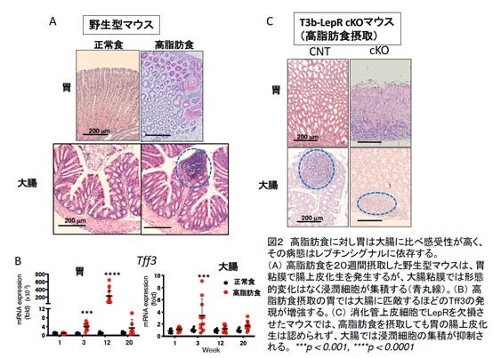 論文タイトル:Augmented leptin-induced trefoil factor 3 expression and epidermal growth factor receptor transactivation differentially influences neoplasia progression in the stomach and colorectum of dietary fat-induced obese mice. (レプチン誘導性トレフォイルファクター3発現と上皮成長因子受容体のトランス活性化は,高脂肪食マウスの胃と大腸において異なる作用で新生物化を促進させる)