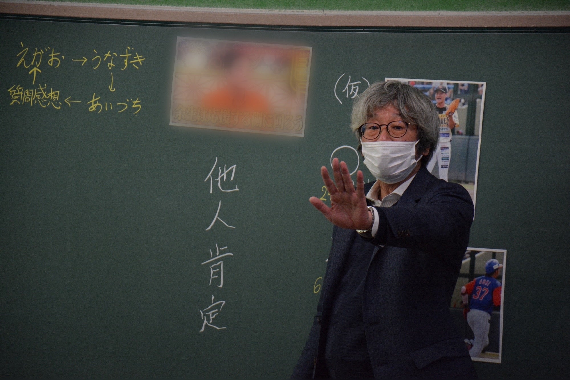 プロ野球選手と芸人の二刀流で活動する高岸さんの合言葉「やればできる!」を、「やればできる」という言葉を使わず児童に説明してもらったり、野球の試合中にホームランを打たれ、相手チームに拍手を送る投手・高岸さんの心情を予想したりしていきます。