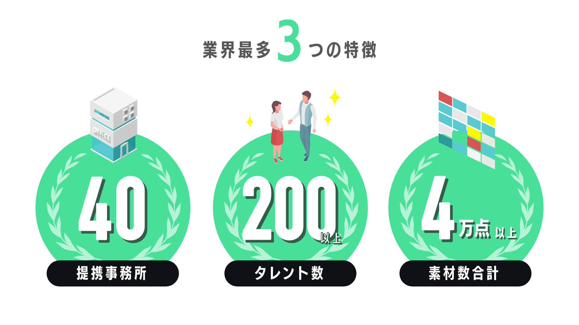 通常のタレント起用相場に比べ、低価格で全国区の有名タレント素材(画像)を企業PR等に使える仕組みを構築し、これまで価格や範囲・アクセス・交渉の面で難易度が高かった中小・地方企業にも、タレント選定〜起用〜クリエイティブ制作までのハードルを大幅に下げ、より簡易的に活用できる仕組みを実現しました。