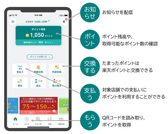 ・本実証実験で付与されたポイントは楽天ポイントに交換可能です。(交換比率:1.0)