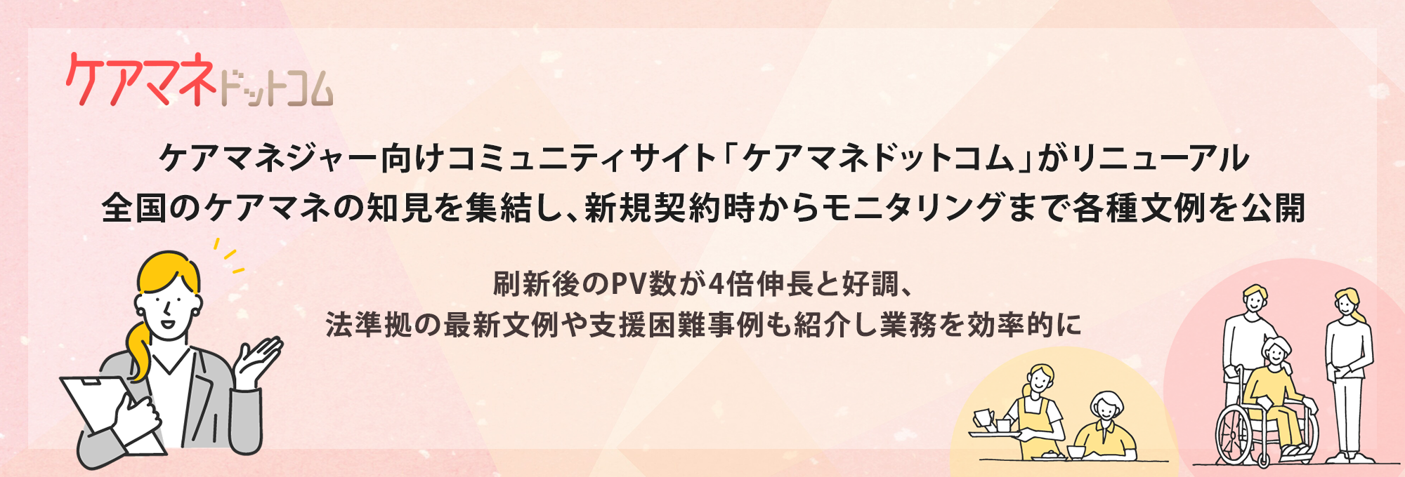 ケアマネジャー向けコミュニティ。ケアマネジメントに役立つ最新ニュースや専門情報、悩み相談や意見交換ができる掲示板などのコンテンツを提供。ケアマネジャーを多方面からサポートしています。