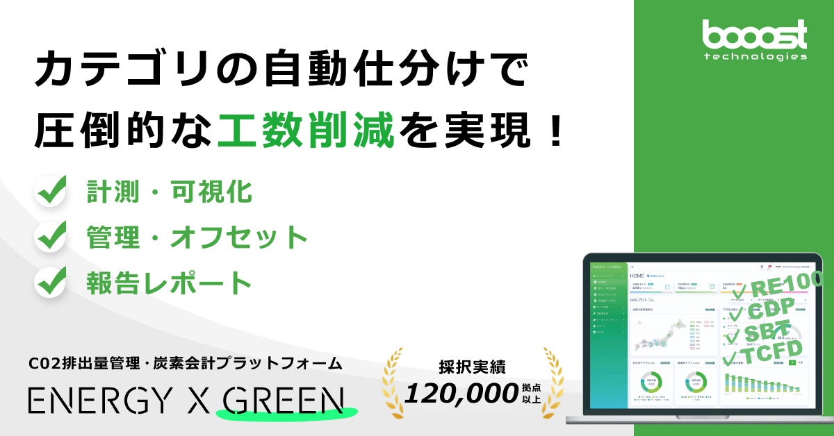 CO2等排出量の可視化・管理・オフセット・報告レポートが可能なカーボンマネジメントプラットフォームです。イオン等の各業界のNET-ZEROリーダーに選ばれ、累計12万拠点以上に導入。製品・サービスごとの可視化や、計画に沿ったCO2の削減(省エネ、再エネ、非化石証書の購入等)を実行します。さらにRE100、SBTi、TCFDや温対法等の各種報告レポートを自動作成。効率的な脱炭素経営をサポートします。