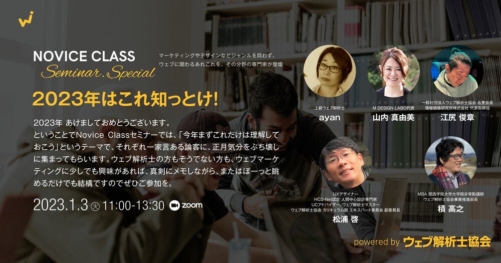 ニュース業界のデータ解析傾向、SERPsの予測、GA4、web3時代のデジタルマーケティングなどのテーマについて、ウェブ解析士協会で一家言ある5人が登壇します。1月3日の朝から、正月気分が吹き飛ぶこと間違いなし! 仕事初め前にぜひどうぞ。