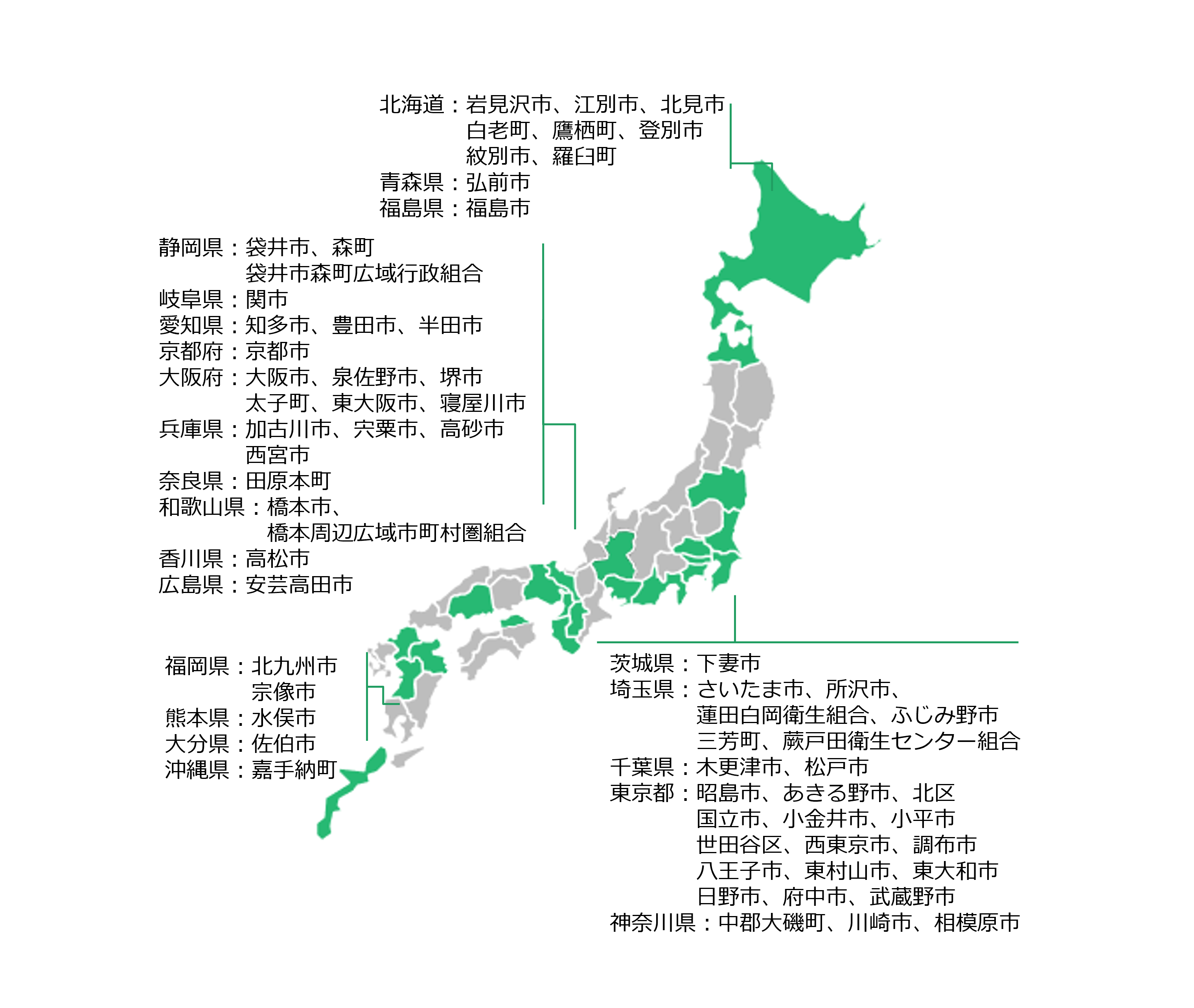2022年12月21日時点で65箇所の自治体と協定や覚書を締結し連携し、リユースに関する啓発及びリユース事業を推進しております。