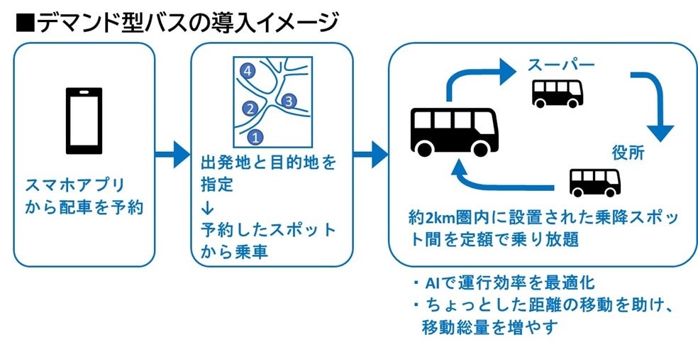 Maasに取り組む事業者の知見を活かしながら、地域交通を相互補完し、域内の移動総量を増やすような交通の体制づくりに取り組む。