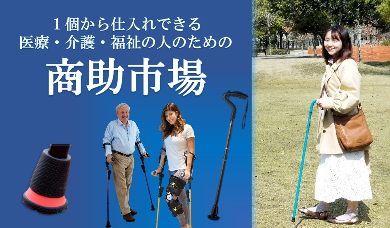 今回、介護・福祉・医療従事者・事業者を支援するオンラインサービス「商助市場」は、普段接する高齢者などが必要とする杖の中でも、クラウドファウンディングで杖ジャンル日本一記録の、米国の医師が開発したパワーステッキ2Gをはじめ、日本で当社しか販売権利がない高機能杖を、事業者価格で小ロット、1個から仕入れしていただける会員登録制のクローズドマーケットです。(一般消費者には仕入れ値は公開されない)