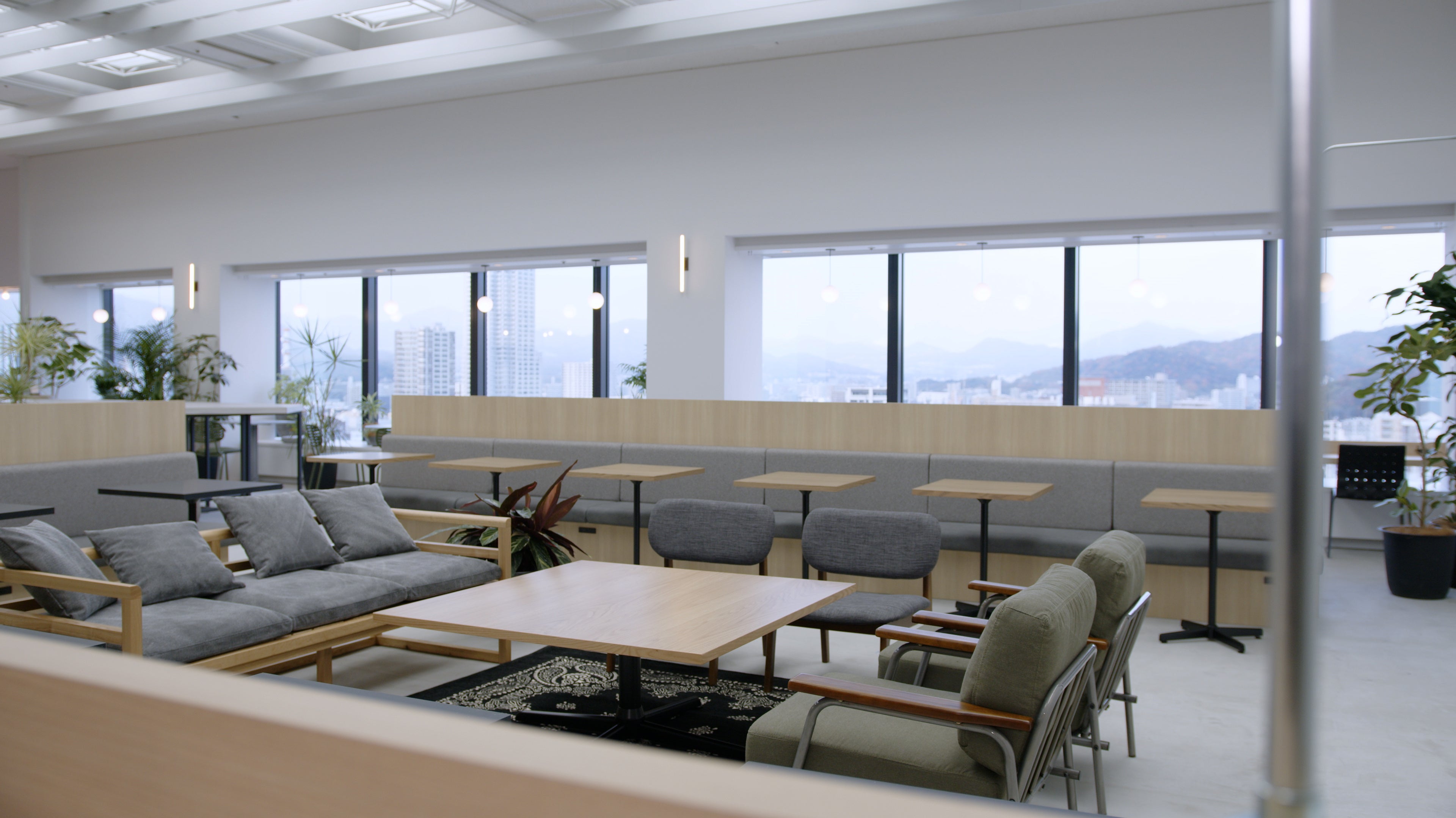 広島市街地や緑、川が一望できる気持ちの良い窓際スペース