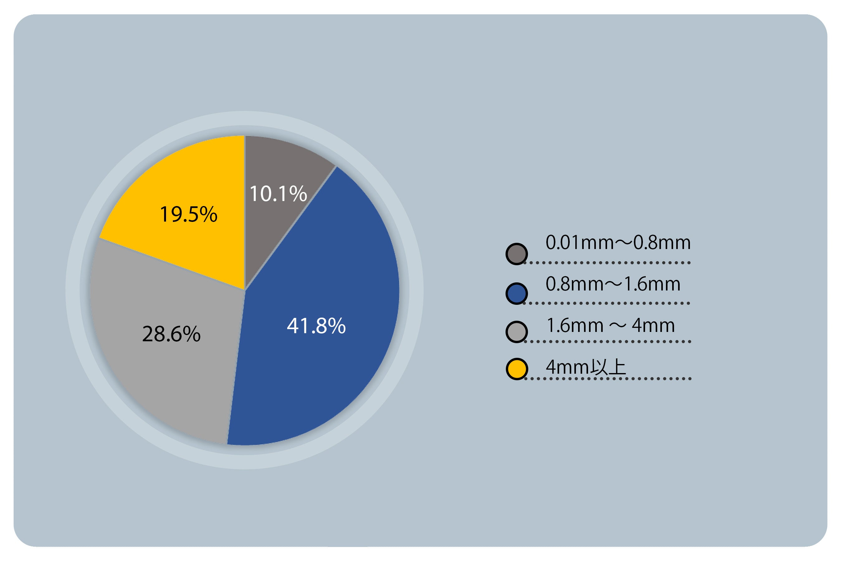 質問:厚さによって、スチールワイヤ市場はどのように分布していますか?