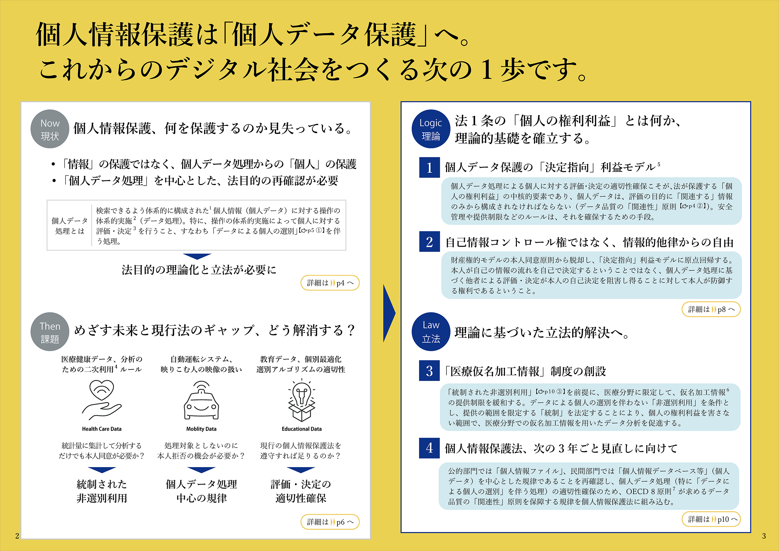 AI・ビッグデータ時代に対応しつつ社会全体のDXを推進するためには、これまで以上にデータを利活用することが求められます。とりわけ個人データの利活用は医療、教育などの分野では重要でありながら、保護と利活用を両立できるルールや考え方が定まらず、議論は袋小路に迷い込んでいる感があります。