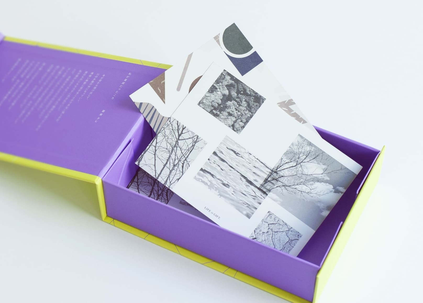 手のひらサイズのかわいいpurple box。ミニサイズのボックスは、名刺整理やカードケースに大活躍。