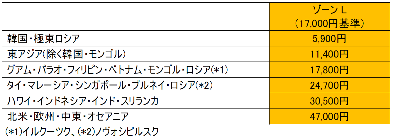 運賃額 : 日本発旅程 (金額はお一人さま一区間片道あたり)
