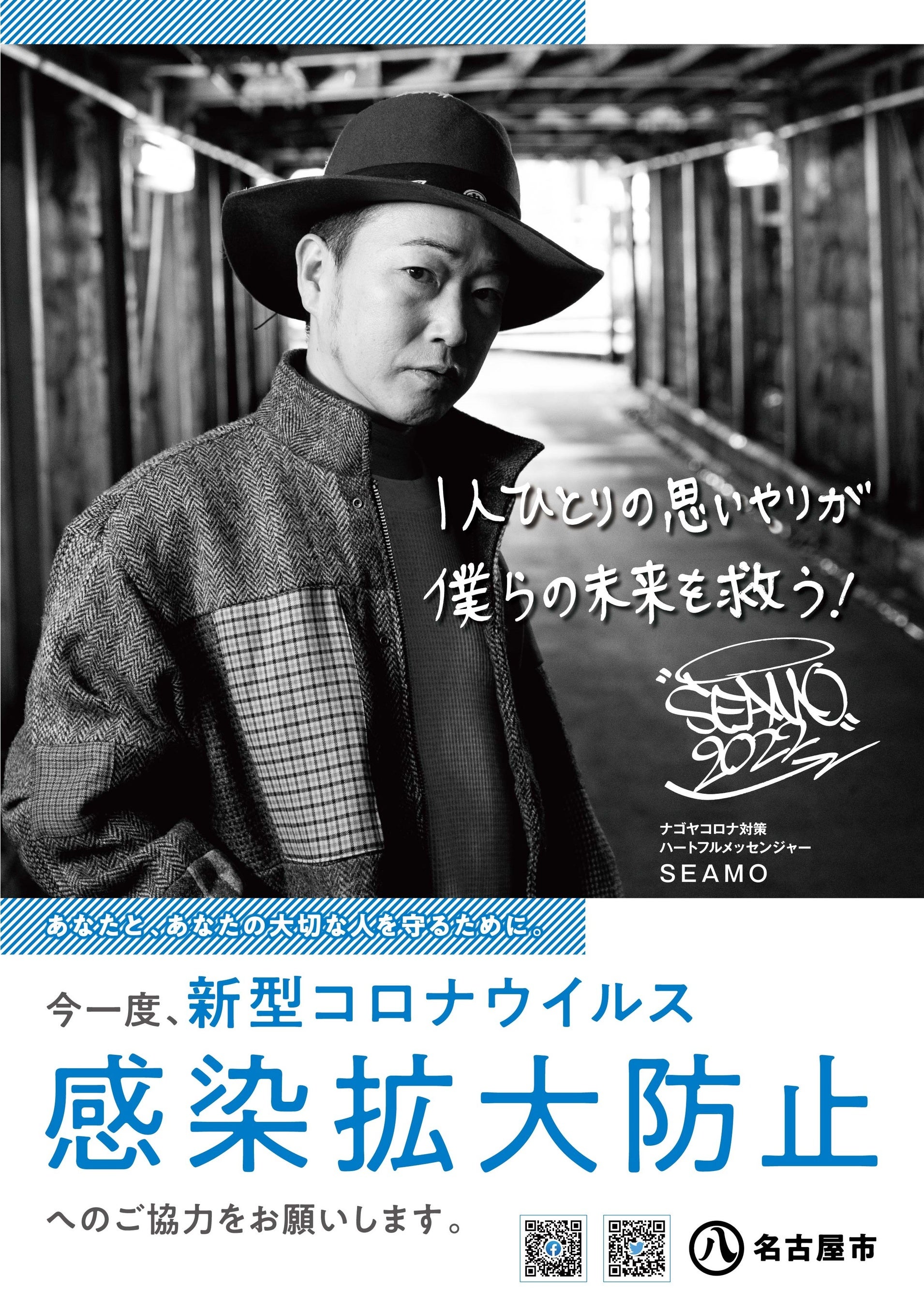 「1人ひとりの思いやりが僕らの未来を救う!」というSEAMO直筆メッセージを添えて、感染拡大防止への協力を呼びかけています。