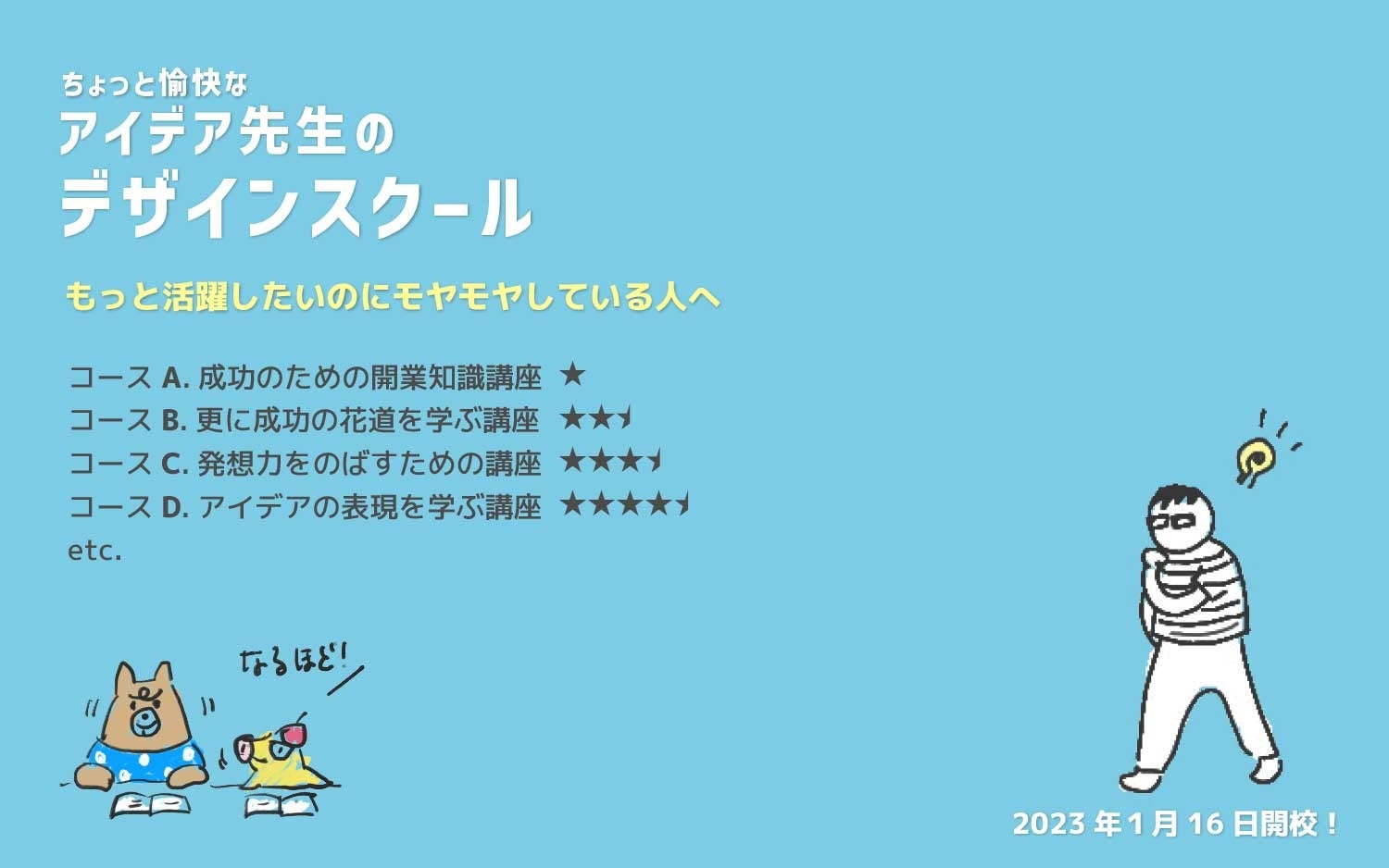 ちょっと愉快なアイデア先生のLOVE the DESIGN SCHOOLでは、もっと業界・社会で活躍したいのにモヤモヤしている人々へ「真のデザイン」を学べるプログラムを提供します。