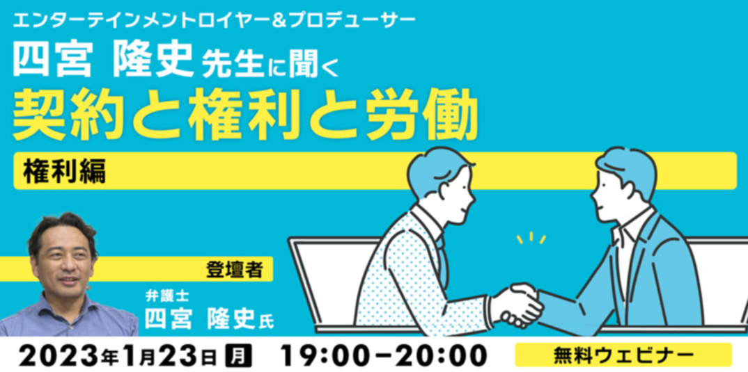 - エンタテインメントロイヤー&プロデューサー・四宮隆史先生に聞く 契約と権利と労働 ~権利編~