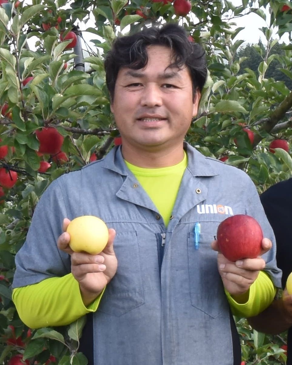 「やっぱり我が家のりんごはうまい!」と“江刺リンゴ”の魅力にひかれ就農しました。私たちの作っているものは、色艶の“美しさ”、芳醇な“香り”、溢れ出る果汁&シャキッと食感“新鮮”、甘酸バランスのとれた濃い味“コク”が特徴です。お客様の心に感動を与えるリンゴを作っています。
