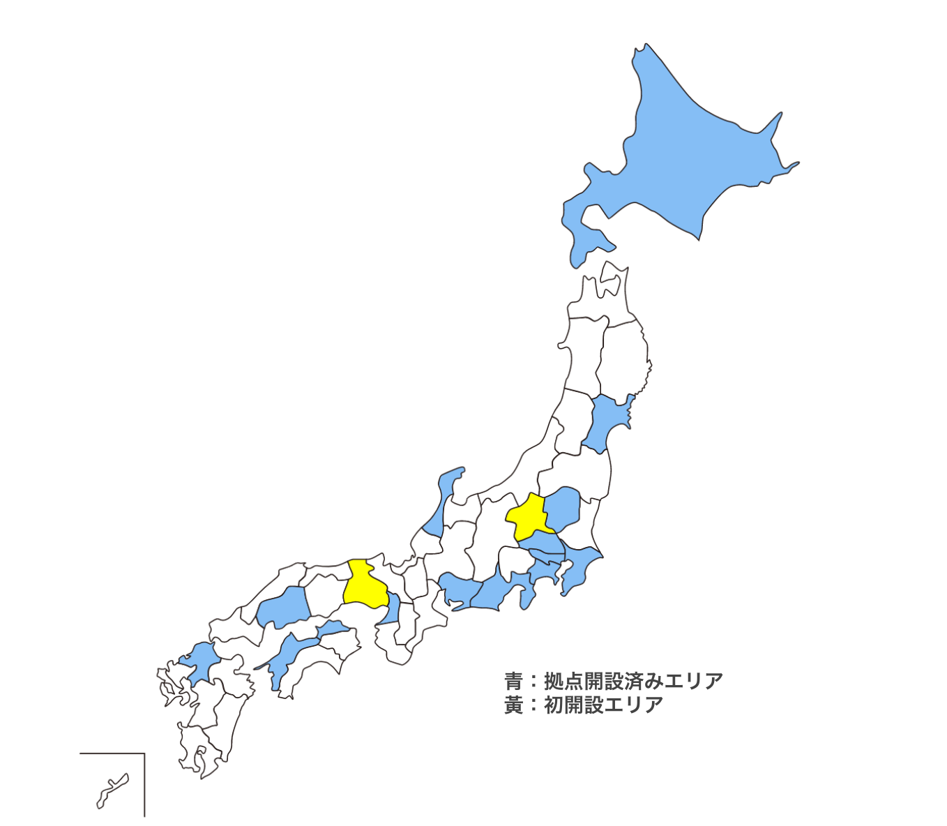 これにより、当社社の拠点数は22拠点、開設エリアは17都道府県へと拡大します。