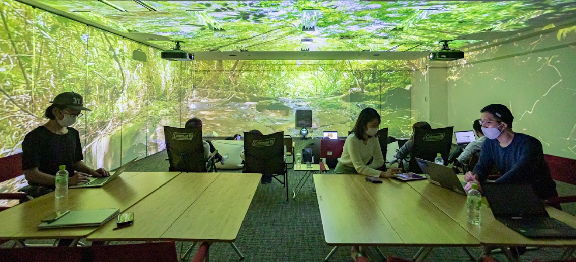 世界初の技術となる”クラウドを通じたマルチスクリーン映像による没入自然空間を再現”するプラットフォームの開発に成功しました。(当社調べ)