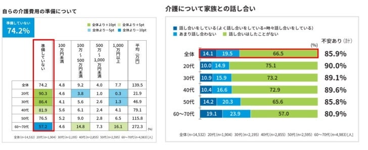2022年の調査では、「老後の備えに必要だと思う金融資産額」について聞いたところ「3,150万円(全国平均)」という結果になり、昨年よりも約300万円増加しています。将来の自分の介護については約7割が「心配している」と回答した一方で、「自身や家族の介護について話し合いをしている」のは約1割に留まっているという実態が明らかになりました。