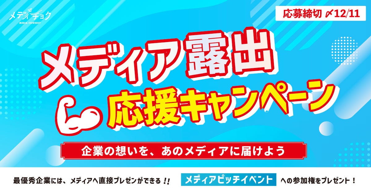 メディアと企業を繋ぐマッチングプラットフォーム:メディチョク(https://www.y-enjin.co.jp/medichoku/)は、これから広報/PRを本格的に始める方や、まだ広報/PRに取り組めていない方を対象に、メディア露出への一歩目を踏み出してもらうことを目的としたキャンペーンを開催いたしました。企業から医療法人、NPO団体にいたるまで幅広い方々にお申し込みいただきました。応募いただいたプレスリリースの中からメディア担当者が選定した1社に、メディアへ直接自社のプレゼンの機会ができる場をご提供いたします。