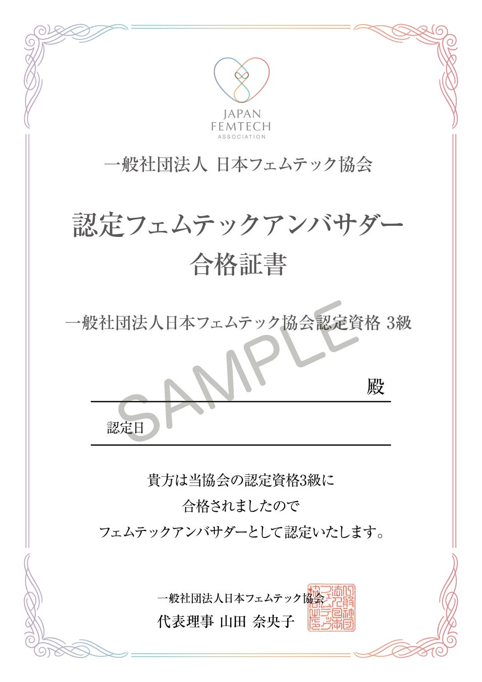 3級を無料公開中。当協会では、誰でもいつでも10分で受験できる「フェムテック協会認定資格3級(web受験・無料)」を公開しています。