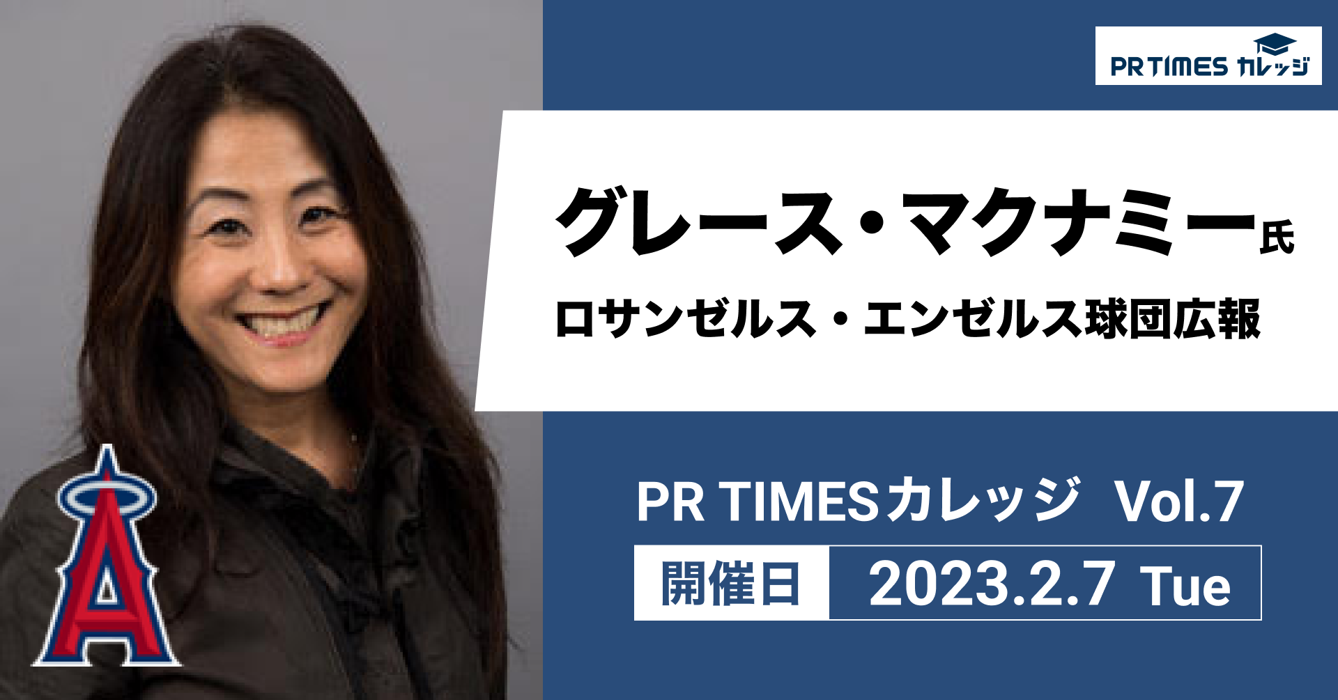 通算7回目となる今回のPR TIMESカレッジは、第一部にロサンゼルス・エンゼルス球団広報を務めるグレース・マクナミー氏の登壇が決定いたしました。大学時代に広報PRのキャリアをスタートさせ、現スクウェア・エニックス・ホールディングスでは映画のプロモーションを担当。そして現在、2度目の球団広報としての道を自ら切り拓いたマクナミー氏に、広報PRに対する仕事観をお話しいただきます。