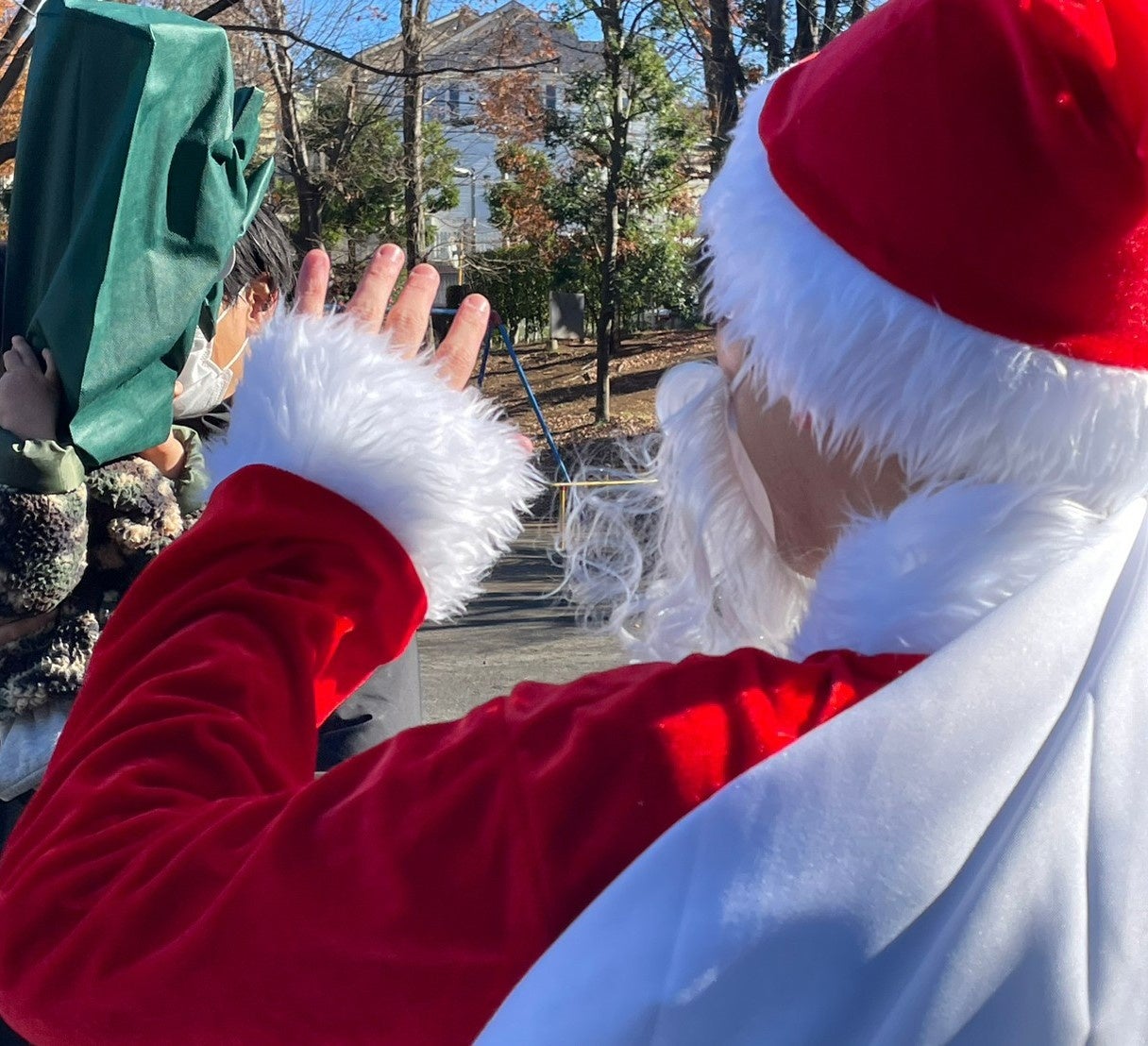 そんな中、12月のクリスマスに焦点を当て、「経営陣が子どもたちにプレゼントを届けるプロジェクトはどうだろう?」という案がチーム間より出たことを機に、企画を立案することになりました。サンタクロースの訪問を希望する社員を募り、近所の公園といった社員からの指定場所までサンタが向かい、合計7名の子どもたちにプレゼントを手渡ししました。
