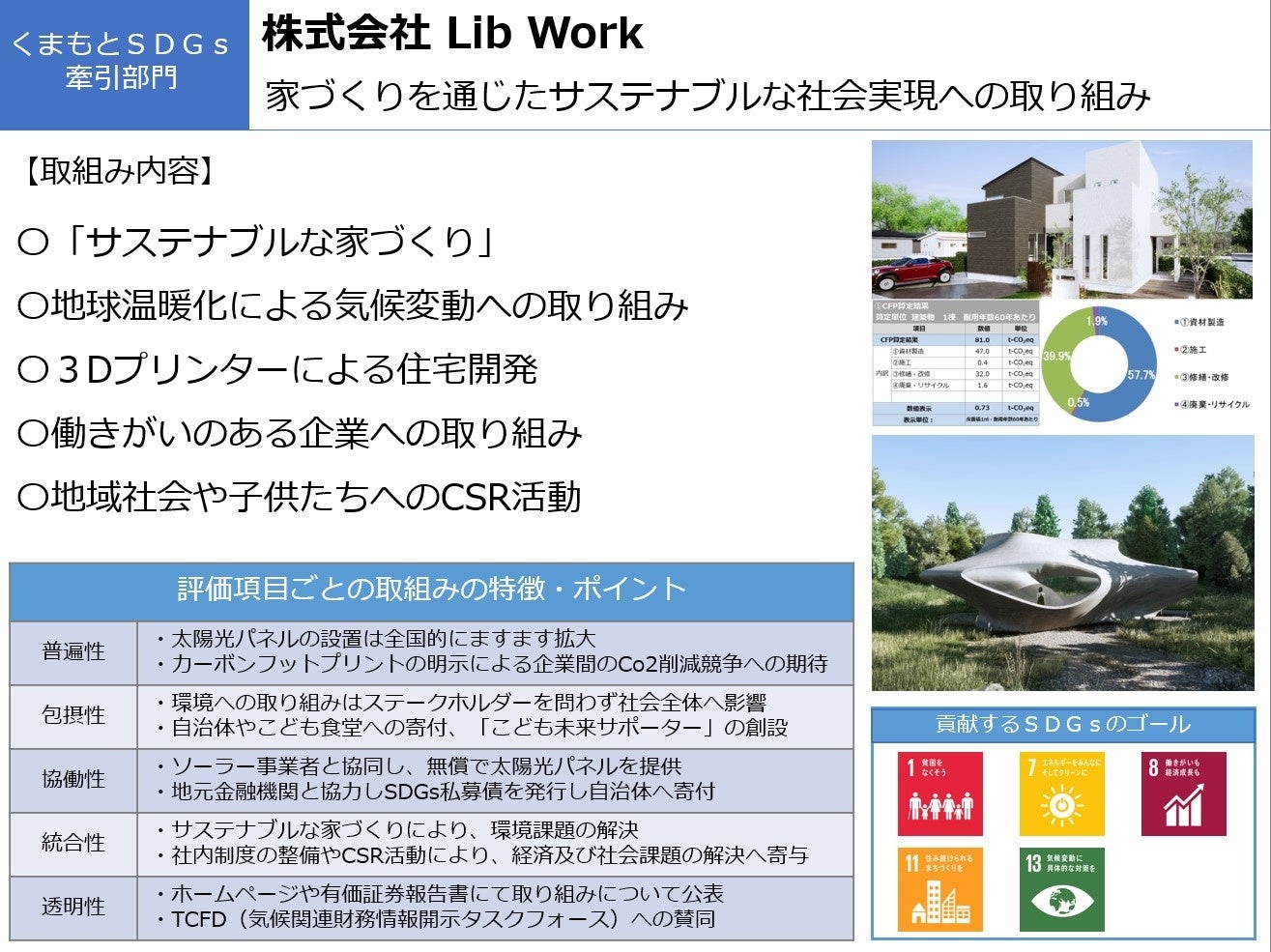 株式会社Lib Work(本社:熊本県山鹿市、代表取締役社長:瀬口 力、証券コード:1431、以下「当社」)は、このたびくまもとSDGsアワード2022※1におきまして、「くまもとSDGs牽引部門※2:優秀賞」に選出されましたのでお知らせいたします。