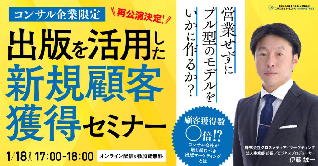 書籍出版を起点にコンサルティング会社の顧客開拓を実現する手法をテーマにしたセミナーです。