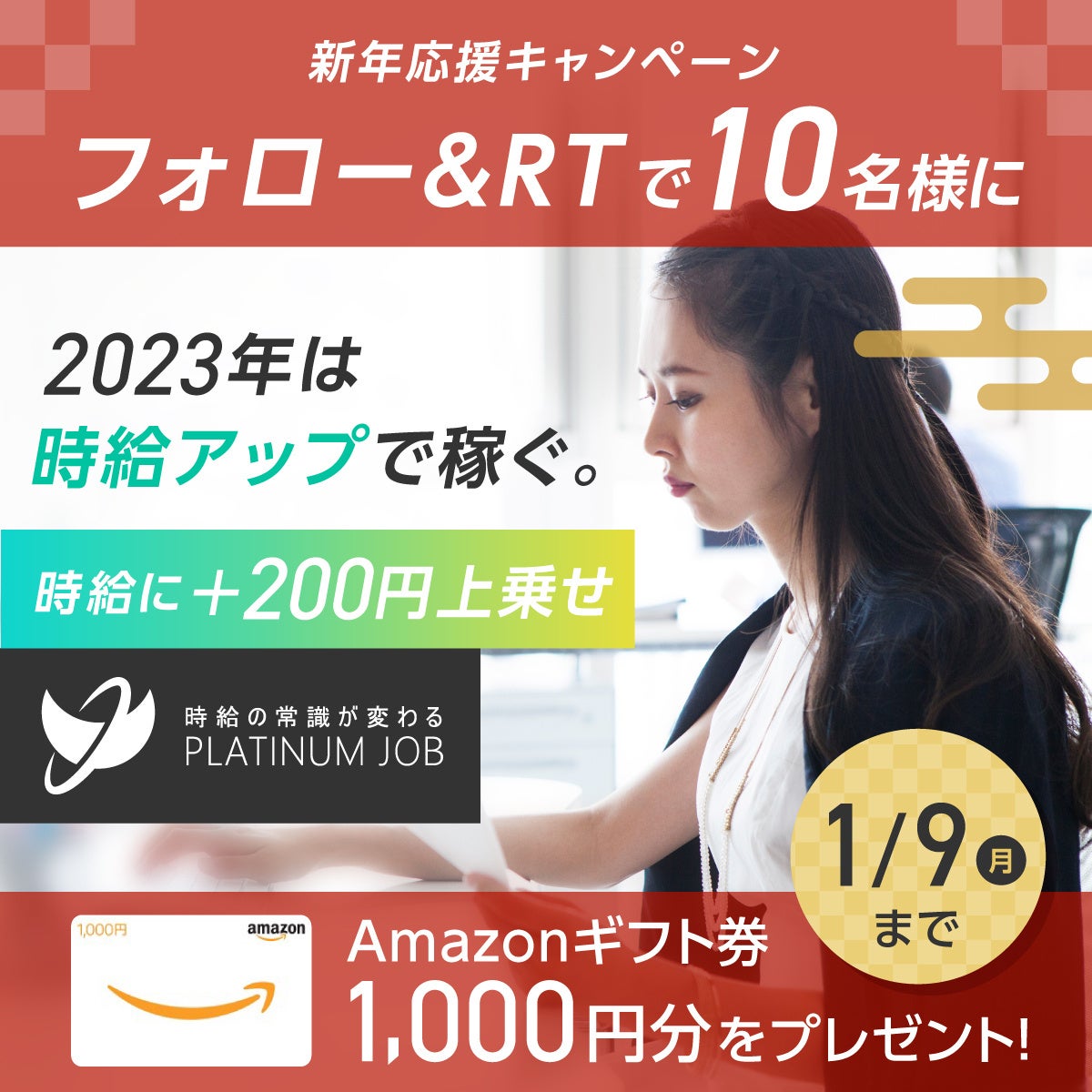 公式Twitter(キャンペーン詳細)⇒ https://twitter.com/PLATINUM_JOB