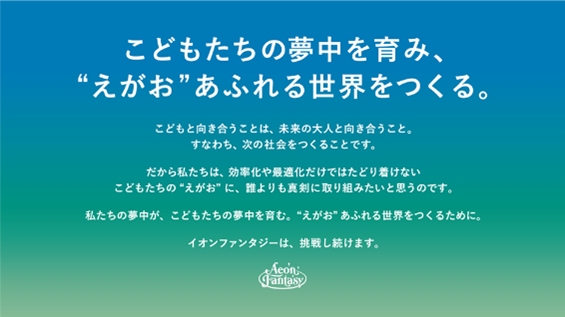 イオンファンタジーはパーパスのもと、“えがお”あふれる世界をつくるために、挑戦し続けます。