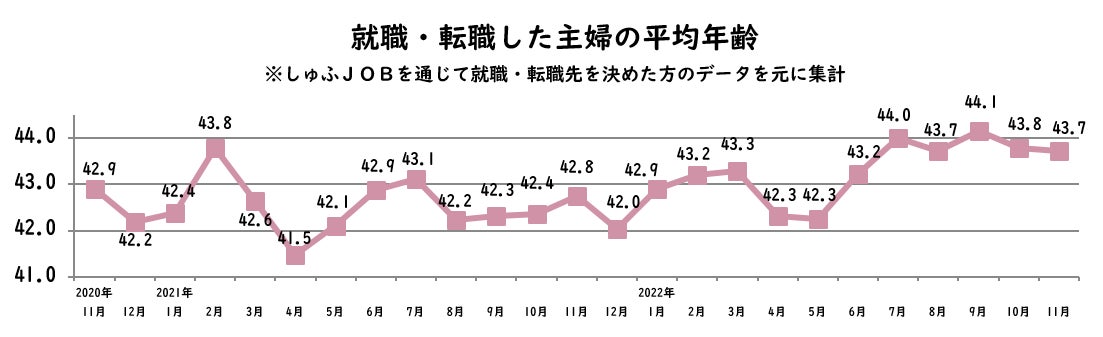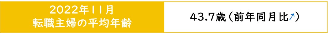 【転職主婦の平均年齢調査 2022年11月】43.7歳(前年同月比+0.9歳)