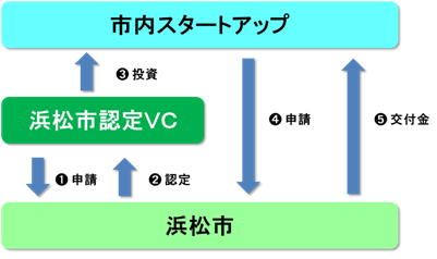 本市では、スタートアップに対して投資を行うベンチャーキャピタル及びシードアクセラレータ等による、市内スタートアップに対する投資及び支援活動を促進するため、2022(令和 4)年度「浜松市ファンドサポート事業」を実施しています。