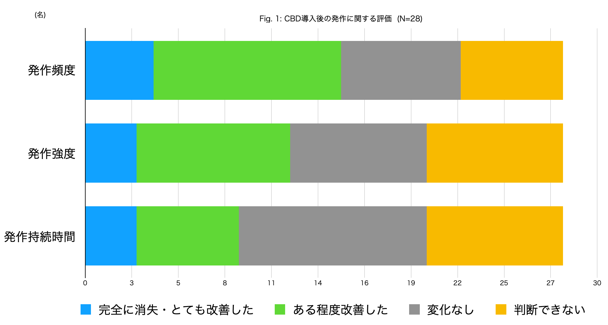 方法:2021年6月にCBDを服用している難治性てんかん患者家族38名にオンライン自記式質問票を送付し、回答を依頼しました。