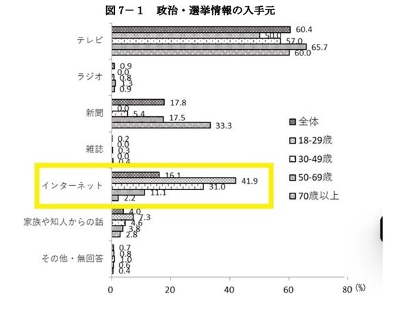 日本では投票率が年々低下傾向にあり、直近の国政選挙だった2022年参議院議員選挙では約52.1%でした。特に30代以下の若年層の投票率は他世代よりも低水準です。一方で、日本で2013年4月に「ネット選挙」が解禁されて以来、投票先を選ぶための情報源としてインターネットを利用する割合は増加傾向にあります。明るい選挙推進協会の最新調査によると、18~29歳では約42%がネットを活用しており、テレビ、新聞に次ぐ主要な媒体になりつつあります。