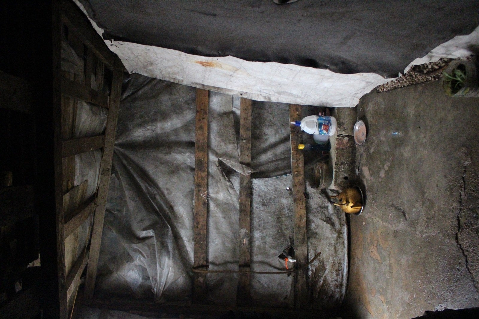 「雨の日には、天井からも雨漏り、床はびちょびちょに濡れてしまい、プールのようになってしまう」と嘆くお母さん。「ちゃんとした住居に住みたいが、収入が安定しない日雇い労働のため、家賃が払えないため、我慢するしかない。子どもは脳に障害を抱えている。学校までの交通費が払えないため、学校には通えていない。