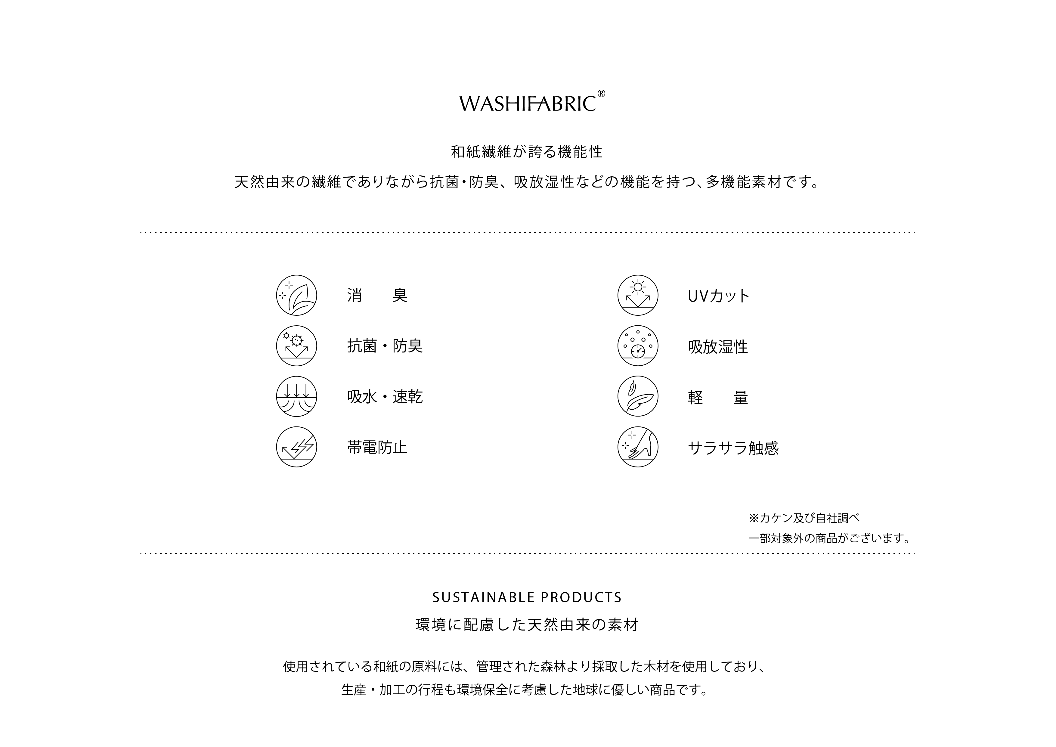 「和紙がつくる健やかな肌。」をコンセプトとして2019年8月にデビュー。肌に触れる大部分が和紙の素材“WASHIFABRIC® ”を使用したアンダーウェアやルームウェアを中心に、レディース・メンズ・ベビーアイテムを展開。その他、オリジナルの洗剤や器など生活雑貨も取り扱い、ライフスタイルを支えるブランドとして数々の商品を提案。