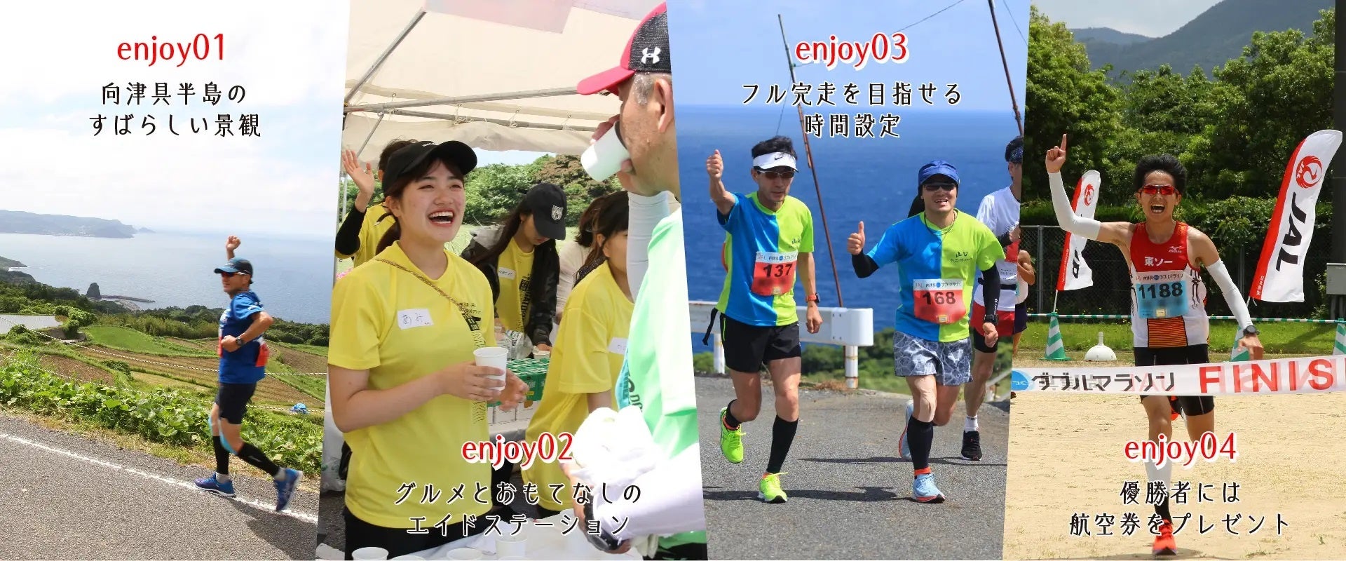 日本海に面した「向津具(むかつく)半島」を舞台に開催する「JAL 向津具ダブルマラソン」。