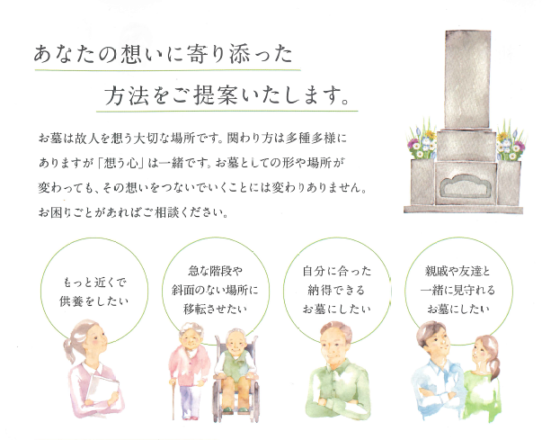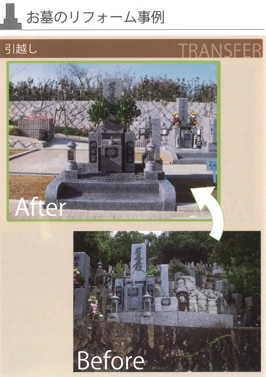 今あるお墓を身近でお参りできるようにお引越しし、据付工事します。