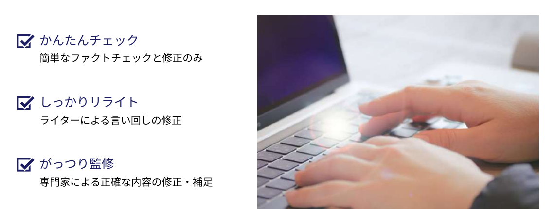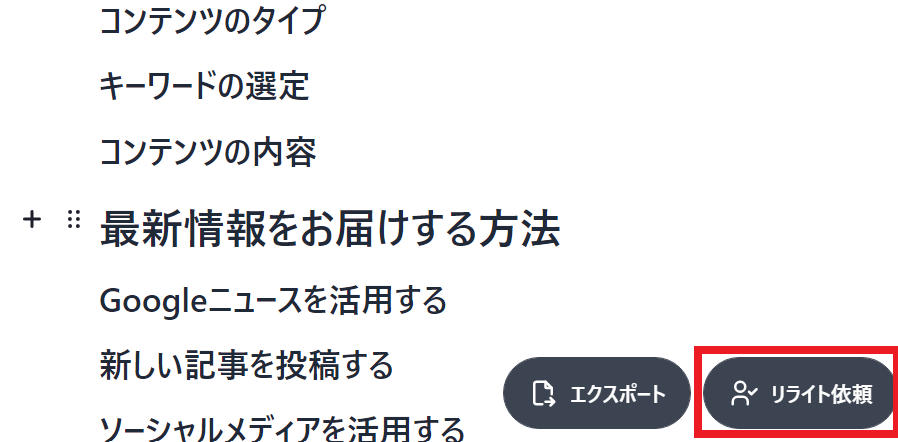 またツール内の「リライト依頼」ボタンより、ライターによるリライトや専門家による監修の依頼も可能です。